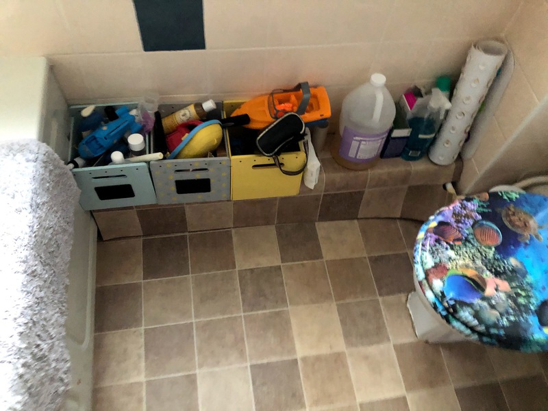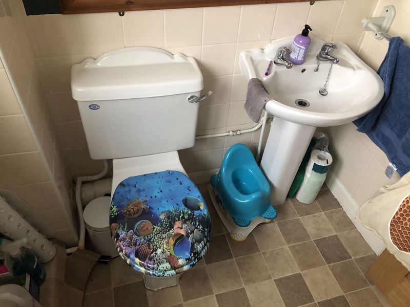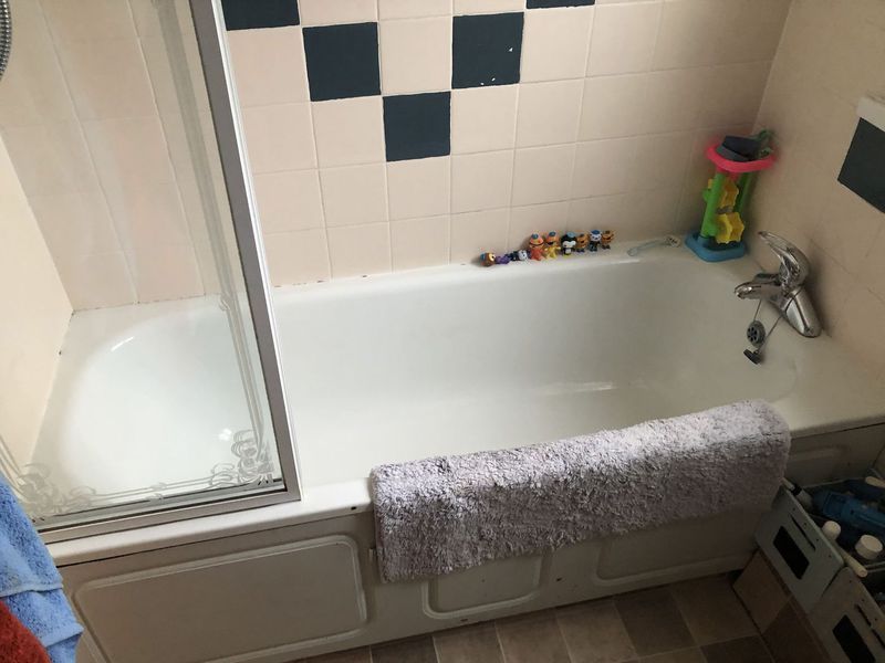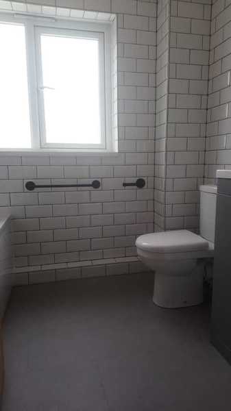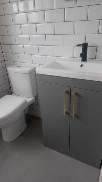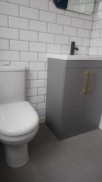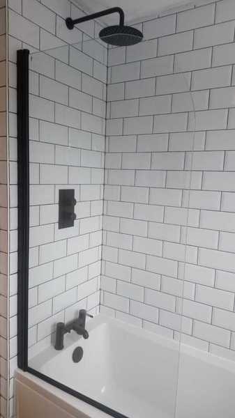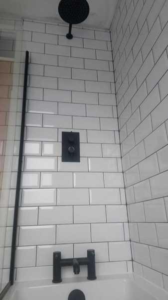 All fixtures were purchased from Victoria Pluming. Tiles from Topps Tiles. After tiles were removed we had to repair the walls. Disconnected and removed all fixtures. Disconnected and removed electric shower. Installed new fixtures, thermostatic shower. Shower, taps and accessiores are black. Tiles white metro and antracite grout. Repaired and leveled floor. Then installed click vinyl flooring LVT. We also installed Stuart Turner shower pump because water pressure is low.